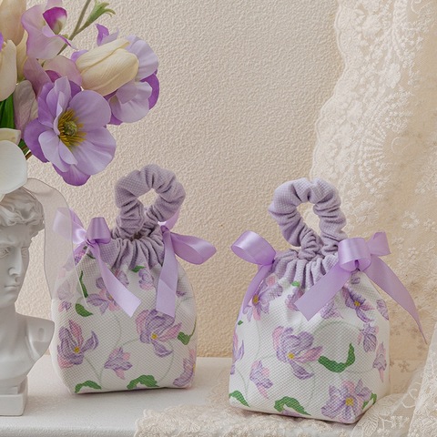 Nueva bolsa creativa de dulces de boda con flores, bolsa portátil de tela con cordón para embalaje de regalo pequeño de vacaciones con asa
