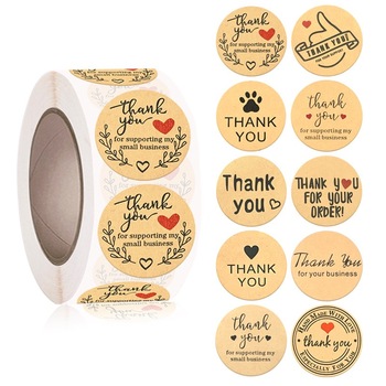 Pegatinas de agradecimiento redondas, etiquetas por rollo, pegatinas bonitas para embalaje de regalo de fiesta, 1 pulgada, 500 Uds.
