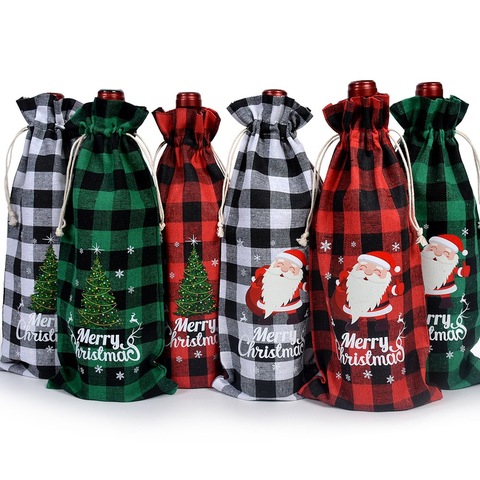 새로운 도착 하이 퀄리티 면 크리스마스 장식 와인 병 포장 졸라매는 끈 가방 크리스마스 디자인